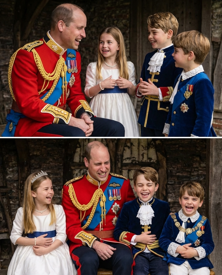 As the conversation progressed, Prince William began recounting a story about his own childhood adventures. With each unexpected twist in the story, he exaggerated facial expressions to emphasize the humor. Suddenly, he made a particularly silly face—eyes wide open, mouth agape, and eyebrows furrowed comically. The effect was immediate. Princess Charlotte giggled, her laughter spreading to everyone. Prince Louis, still learning to be funny, joined in, while Prince George clutched his stomach laughing uncontrollably.