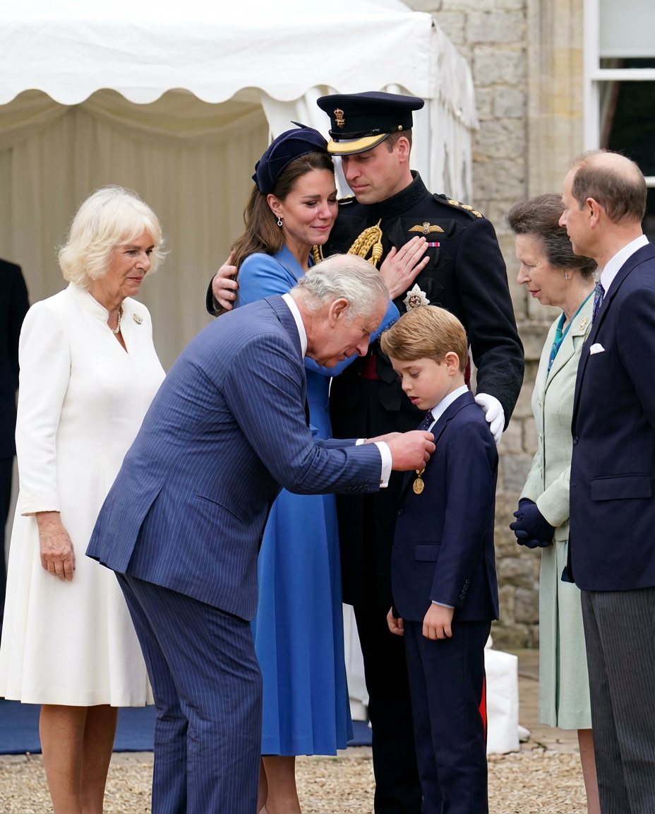 As King Charles pinned the royal insignia on Prince George, cameras captured a touching moment: Princess Catherine, visibly moved, embraced her husband, Prince William, with tears glistening in her eyes. This emotional expression resonated with many, highlighting the personal importance of royal duties. Catherine's reaction reflected the weight of tradition and hope for the future, encapsulating the interplay of family love and royal duty that defines the monarchy.