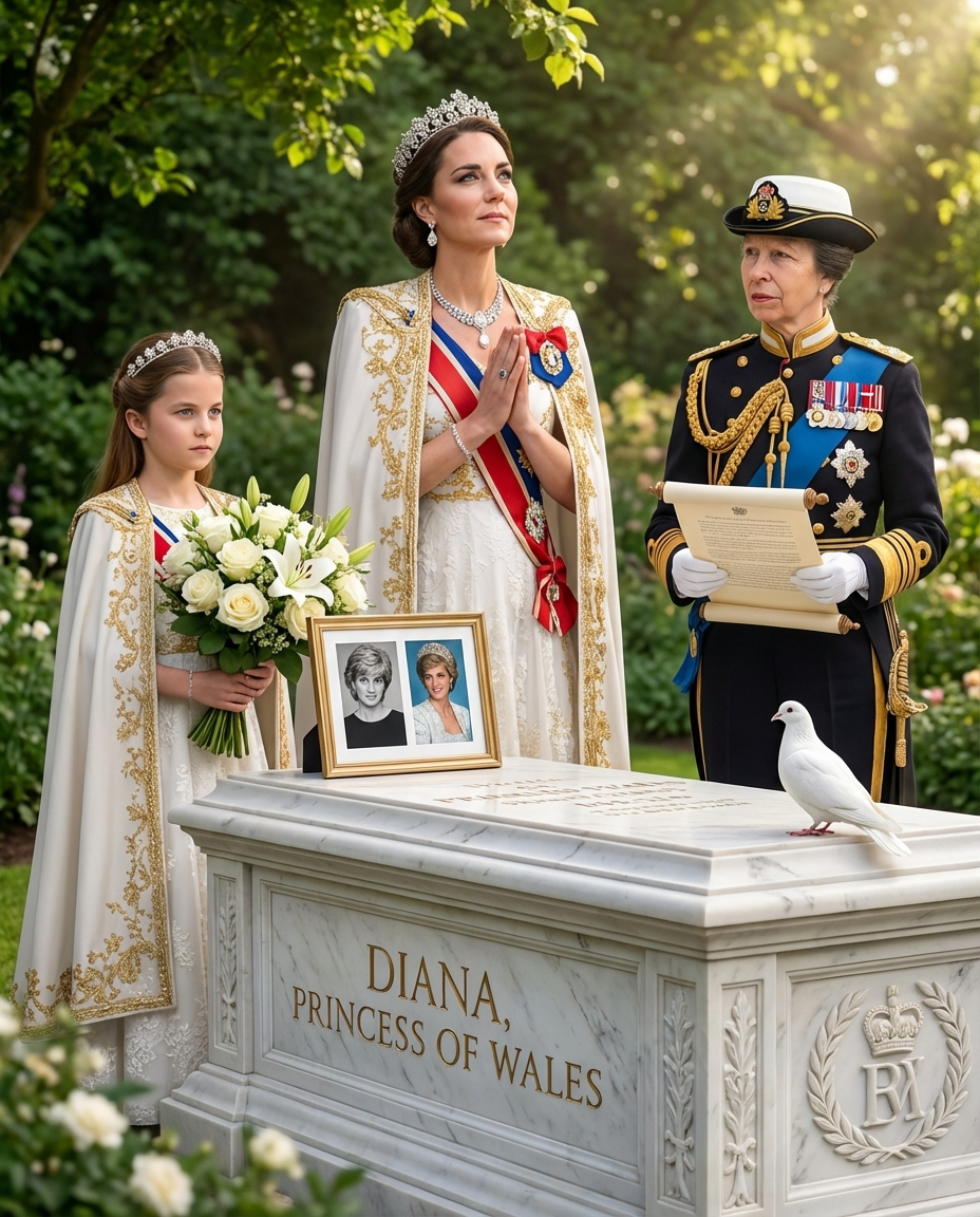 At such a young age, Princess Charlotte embodies the hope of the next generation. Holding a bouquet of white flowers, a symbol of purity and remembrance, Charlotte's presence at the grave was particularly moving. It showed her connection to her grandmother, known for her warmth and love. This visit may have been Charlotte's first lesson in the importance of family heritage and the values Diana represented.