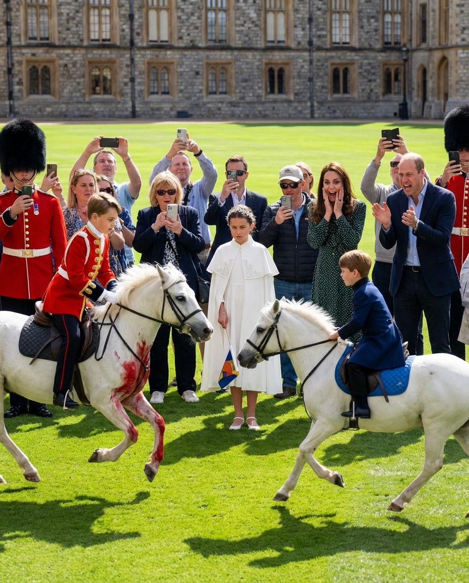 The scene took place during a recent family outing at a royal event, where the atmosphere was filled with laughter and excitement. Dressed in traditional royal attire, Prince George and Prince Louis embodied the spirit of horse racing, a sport long associated with the British aristocracy. Their costumes, reminiscent of classic equestrian attire, further enhanced the authenticity of their playful antics. Meanwhile, Princess Charlotte, in her adorable outfit, took on the role of referee, adding charm to the entire event.